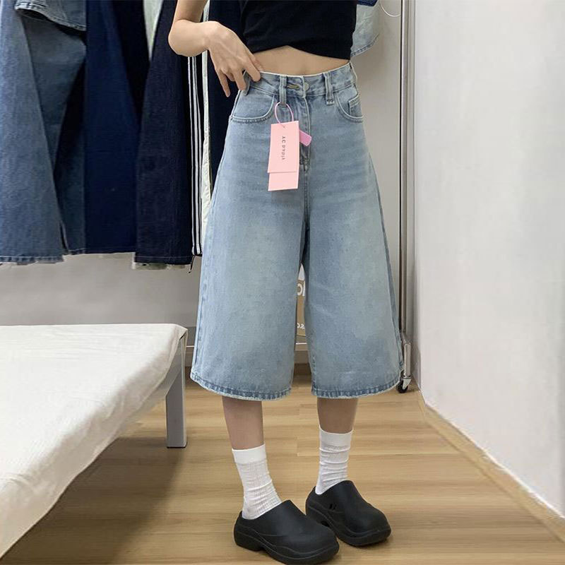40 - tersedia - 30760 # Celana pendek denim wanita longgar kasual trendi Eropa dan Amerika dengan pinggang tinggi yang dapat meniruskan bentuk tubuh