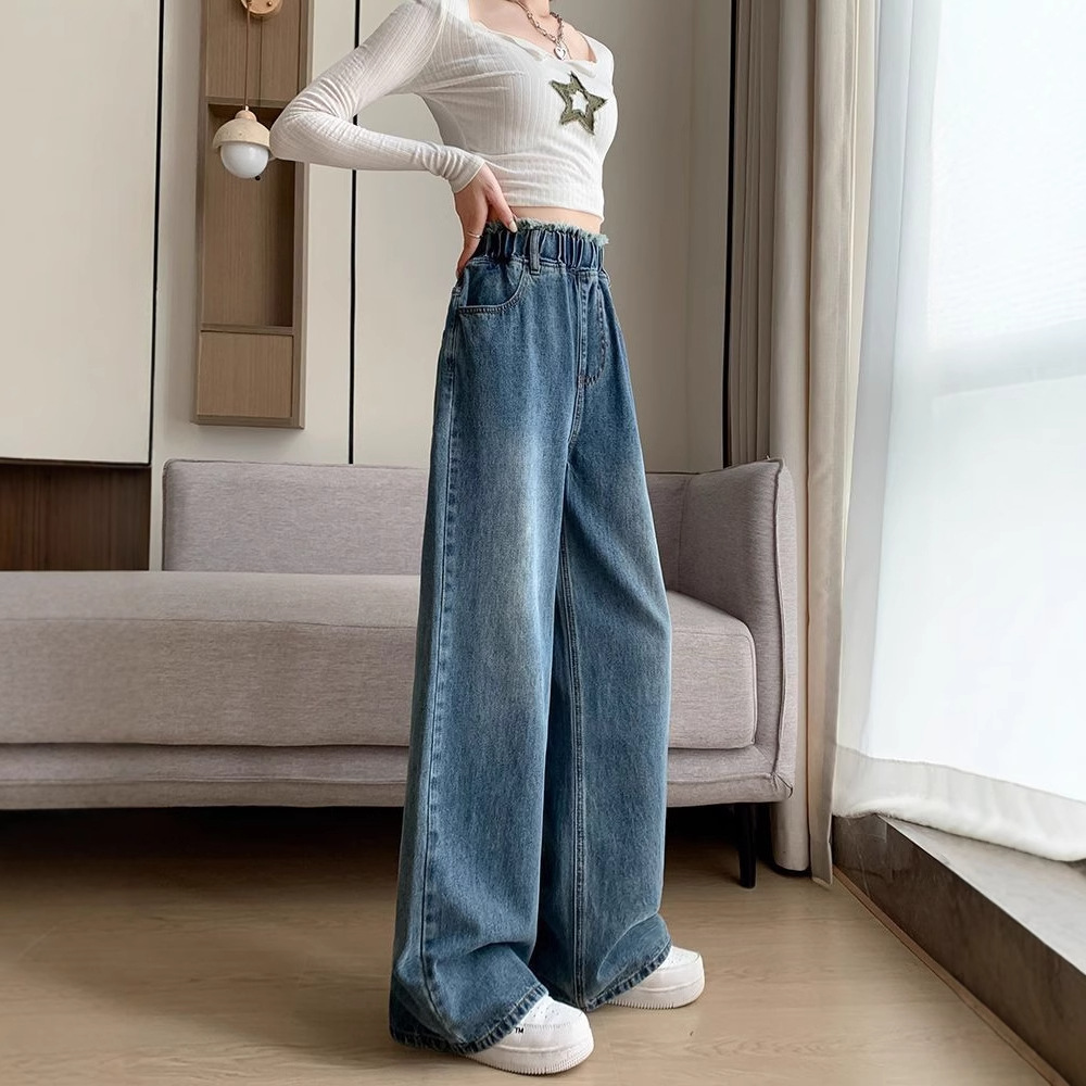 Bulu Fan Si Celana Jeans Lurus Longgar Terlihat Langsing Pinggang Tinggi Sama dengan Model Baru Awal Musim Gugur 2025 Wanita 10892