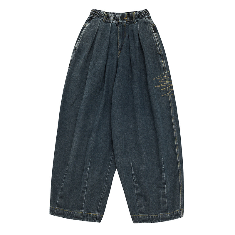 Celana Jeans Bordir Kain Handuk Retro Gaya Amerika Celana Solok Lurus Terlihat Langsing Longgar Terlihat Langsing Celana Panjang Pria Celana Jalan Tinggi