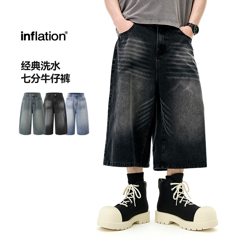 Celana Jeans 7/8 Pakaian Kerja Lipit Gaya Amerika Celana Lebar Saku Besar Gaya Desain Merek Trendi Musim Panas Pria Wanita Celana Sedang Di Bawah Lutut