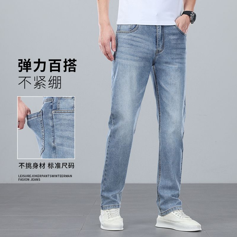 Jins panjang lurus longgar pria, celana jins panjang bisnis 115 regang tinggi kasual pinggang tinggi musim gugur dan musim dingin
