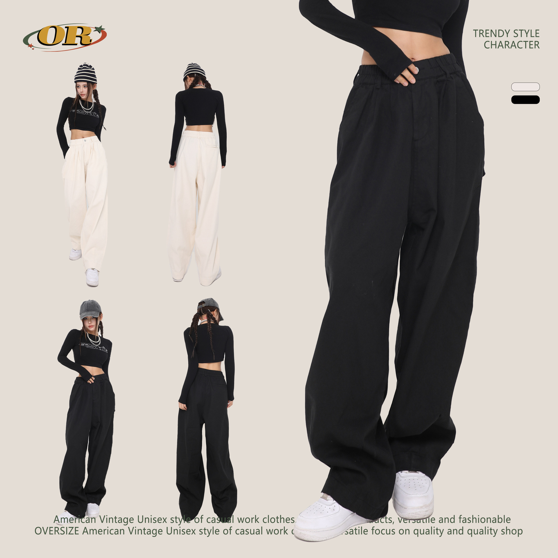 Insight celana kasual pria dan wanita, celana panjang gaya Korea, celana kasual serbaguna longgar lurus, celana gaya sama untuk pria dan wanita