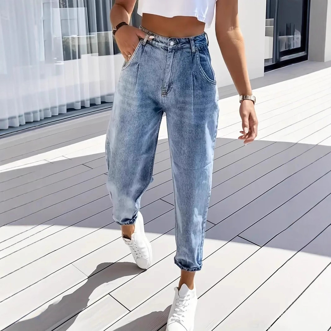 Amazon TEMU Celana Runcing Wanita Elastis Ukuran Besar Celana Crop Jeans Gaya Jalanan Retro Dicuci Air Retro