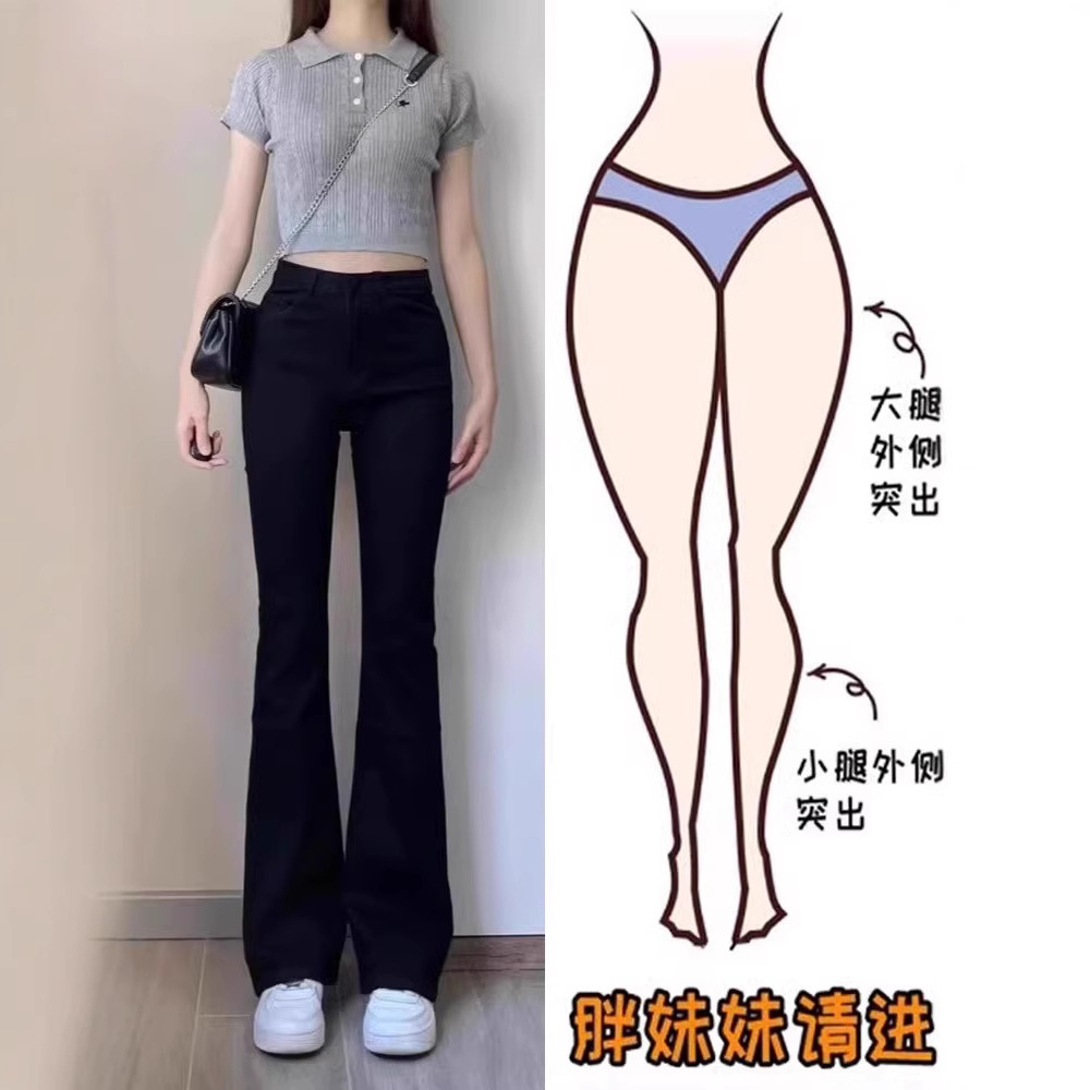 Celana Jeans Warna Hitam Berbentuk Pir Celana Horseshoe Elastis Terlihat Langsing Menutupi Pinggang Tinggi Ukuran Besar Model Baru Musim Semi Musim Panas Wanita