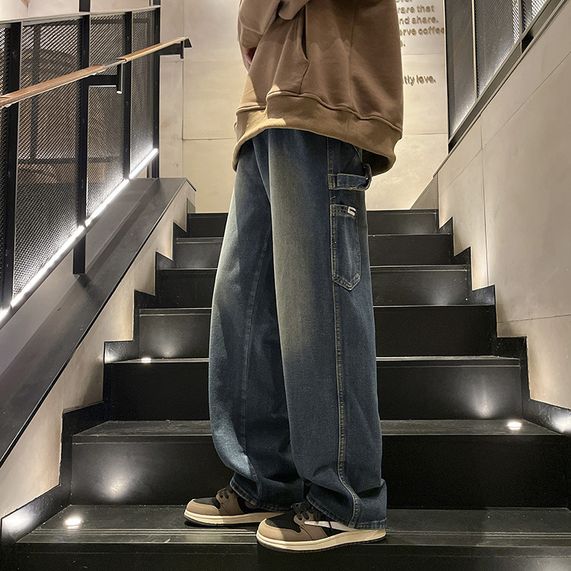 Celana jins retro Amerika untuk pria, celana pel lurus longgar pasangan tampan ins, celana jins retro Amerika, celana mode musim semi untuk pria