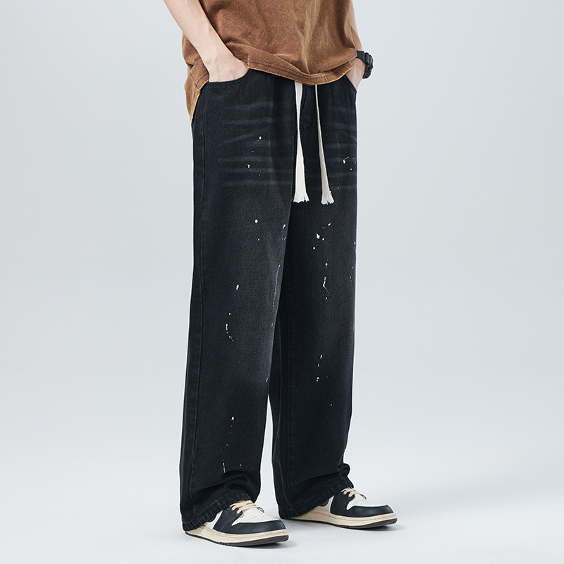 Celana panjang lurus trendi pria, jeans longgar kasual gaya Korea, celana panjang lurus trendi musim semi 2024