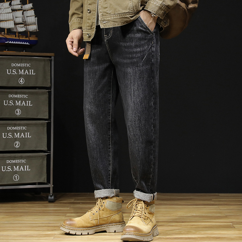 Celana panjang Denim kurus pria, jeans longgar regang longgar gaya sapi besar musim gugur dan musim dingin baru 6331