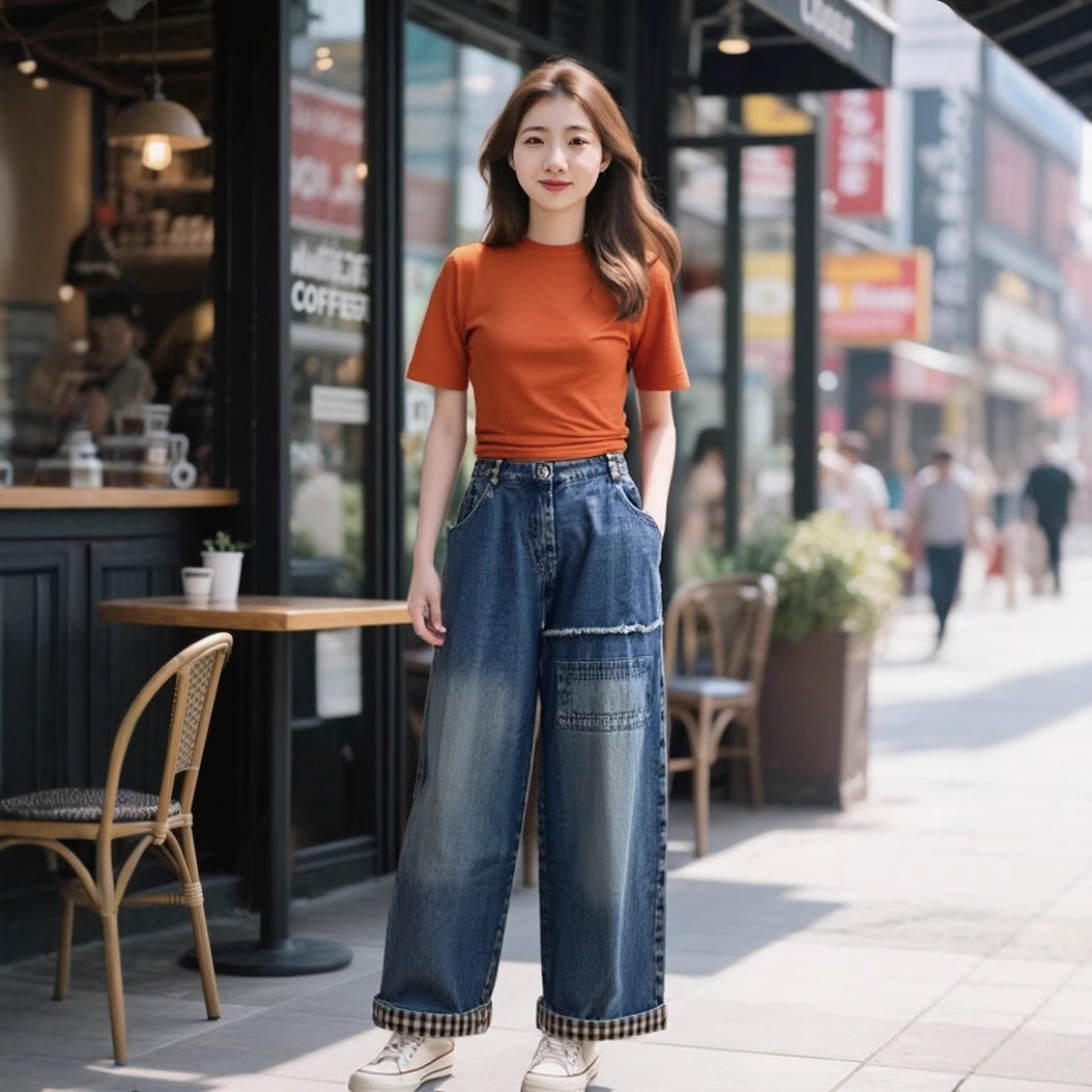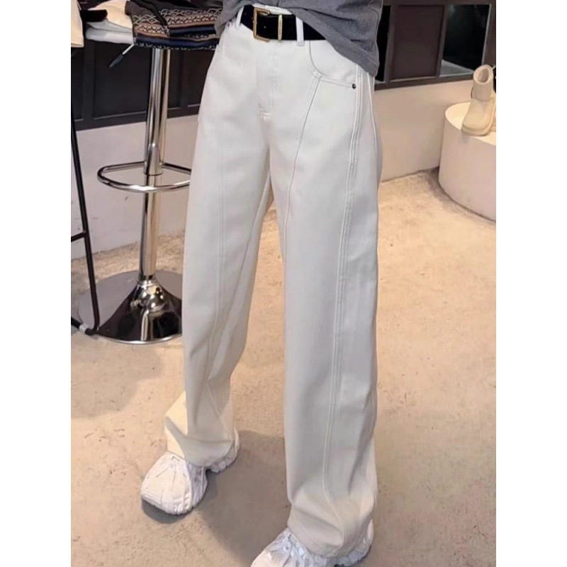 Celana Jeans Wanita Sabrang Dicuci Air Ukuran Besar Wanita Celana Lurus Mudah Dipadu Padan Terlihat Langsing Model Baru Musim Semi 2025