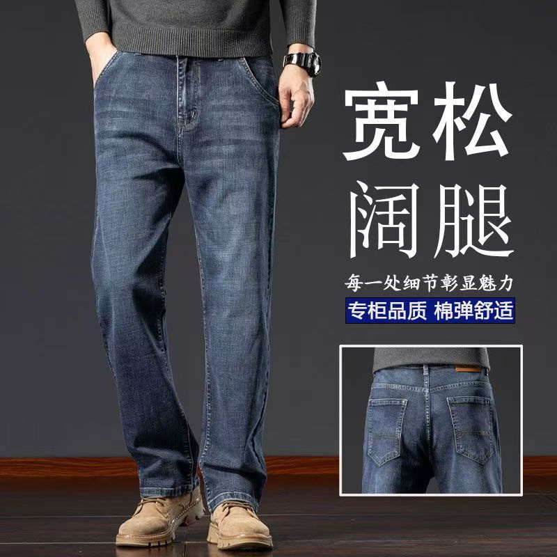 Celana jins pria, jins lurus dicuci musim semi dan musim gugur gaya Amerika longgar kaki lebar musim panas ukuran besar kasual retro merek fashion