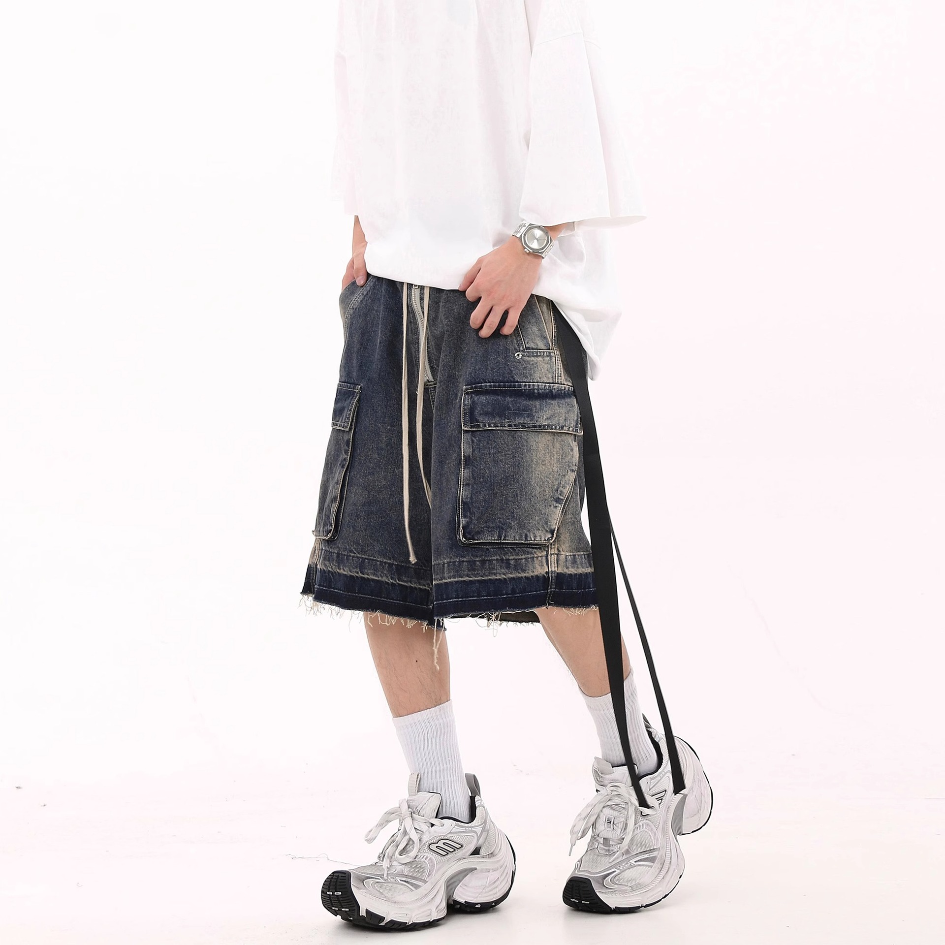Celana Pendek Denim Dicuci Retro Gaya Hong Kong Model Baru Musim Panas 2025 Celana Pendek Setengah Panjang Kasual Gaya Desain Merek Trendi Longgar Trendi