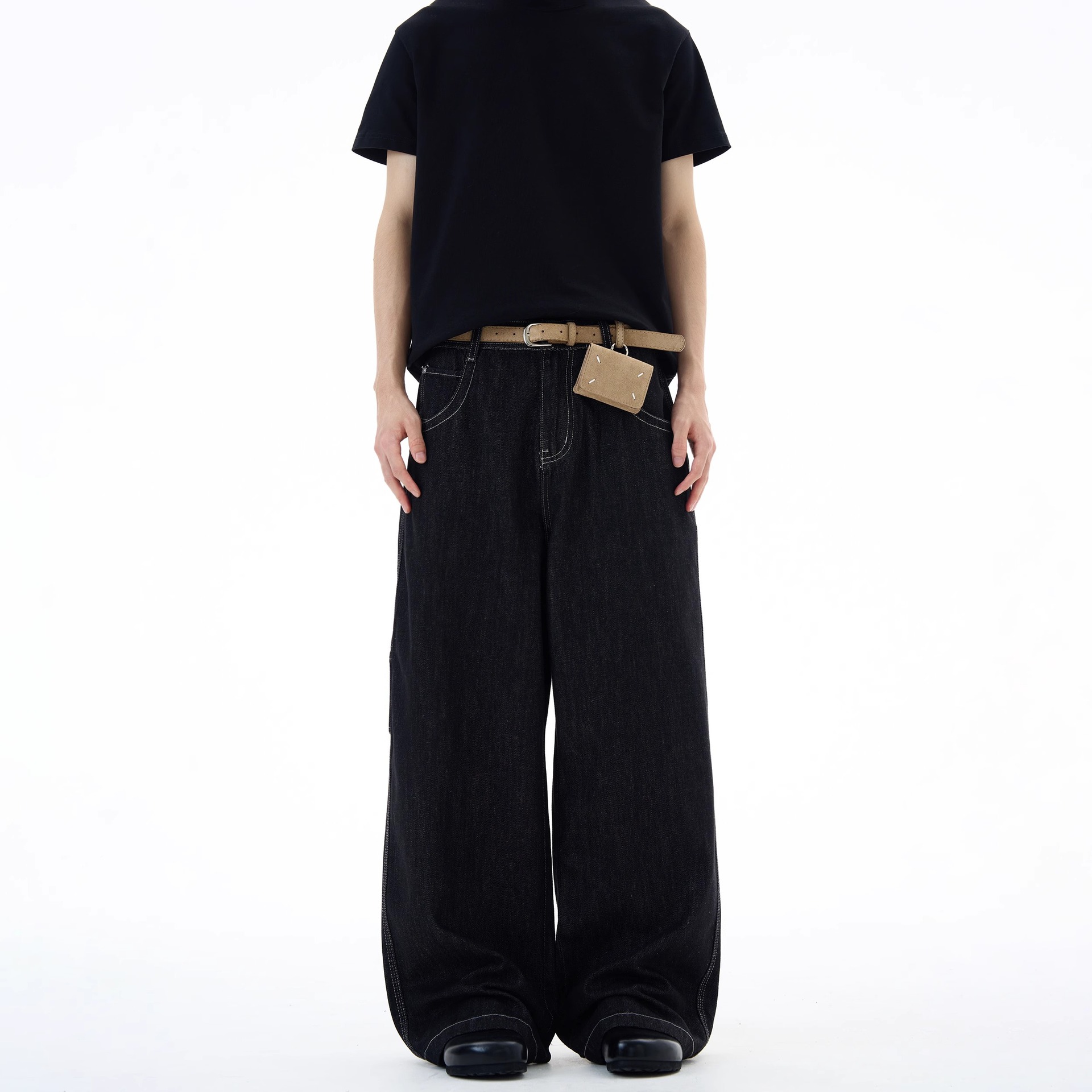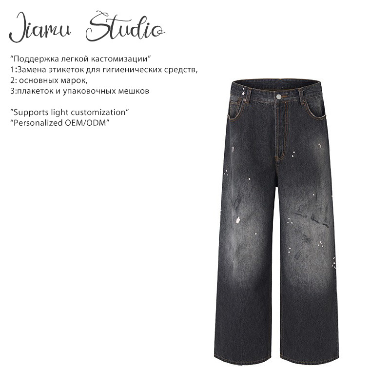 JIAMU泼墨脏染美式baggy jeans牛仔裤男女直筒宽松阔腿中性垂感