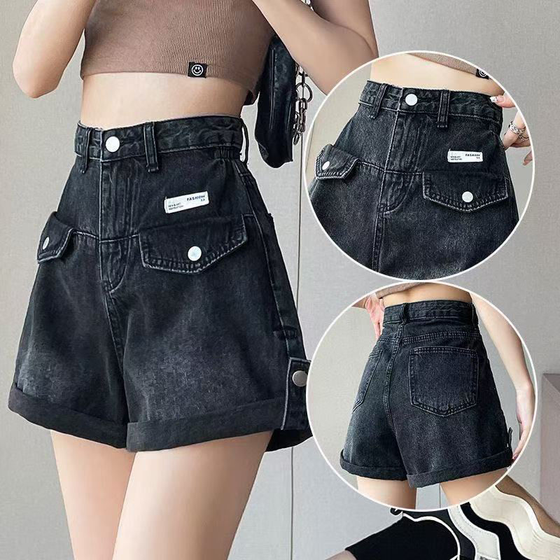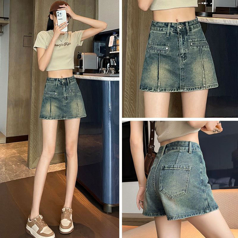 Celana Pendek Denim Retro Celana Hot Huruf A Terlihat Ramping Ramping Ukuran Besar Gadis Pedas Pinggang Tinggi Model Baru Mudah Dipadu Padan Trendi Wanita