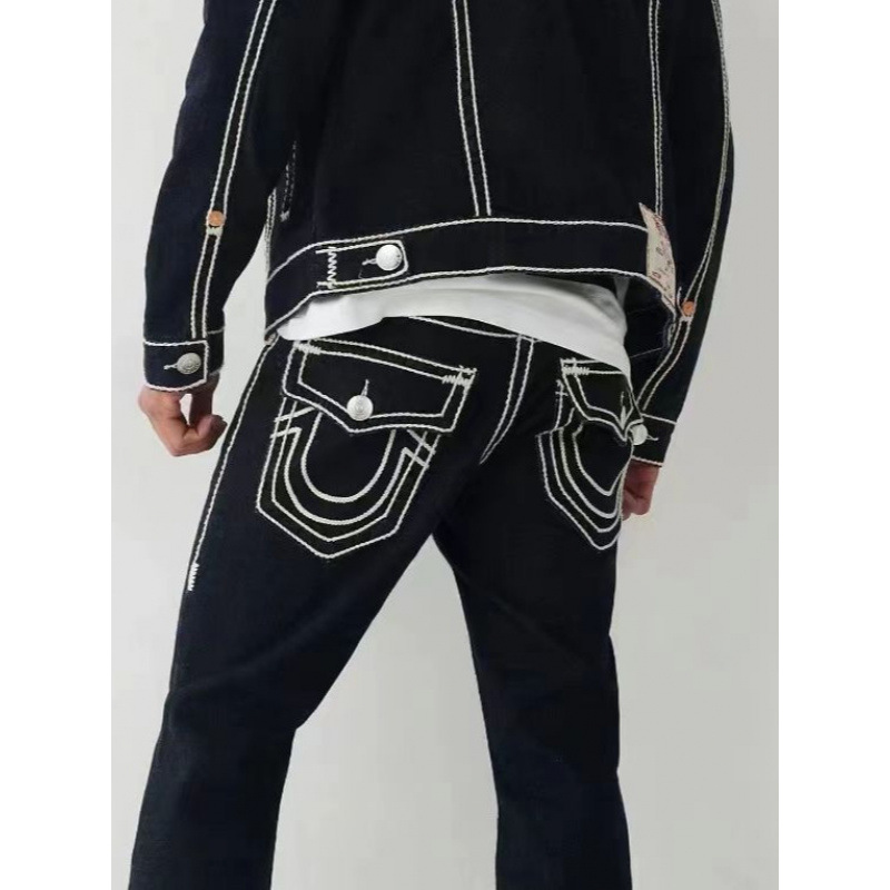 Jeans True Merek Trendi Gaya Amerika Jeans Jalan Tinggi Santai Lurus Garis Tebal Ukuran Besar Iman Buddha Agama Model Pria