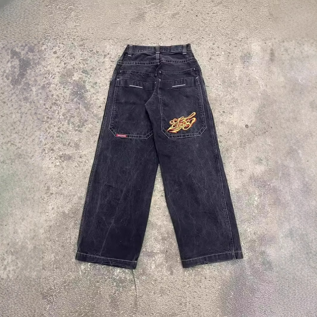 Celana Jeans Y2K Pakaian Jalanan Celana Jeans Longgar Bordir Punk Retro Hip Hop Harajuku Celana Kaki Lebar Pinggang Tinggi Pria