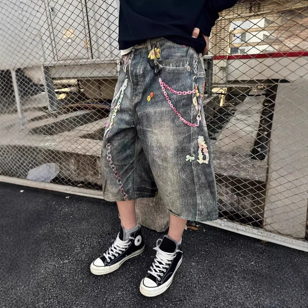 Sepatu Skateboard Celana Pendek Denim Bordir Katun Murni Longgar DENIM PANTS Merek Trendi