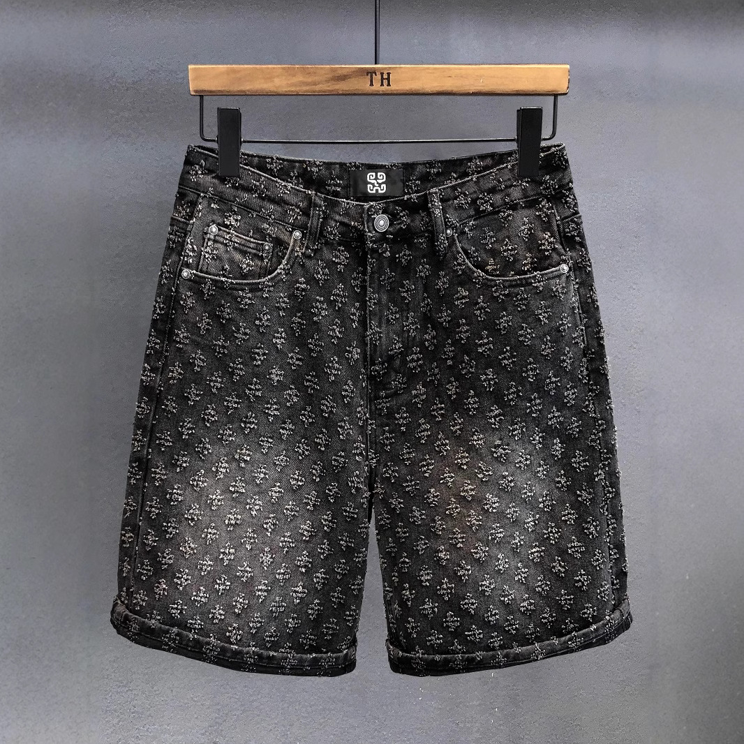 Celana Niche Desain Celana Pendek Denim Lima Poin Retro Lurus Longgar Musim Panas Lubang Jihua Jalan Tinggi Merek Trendi Pria