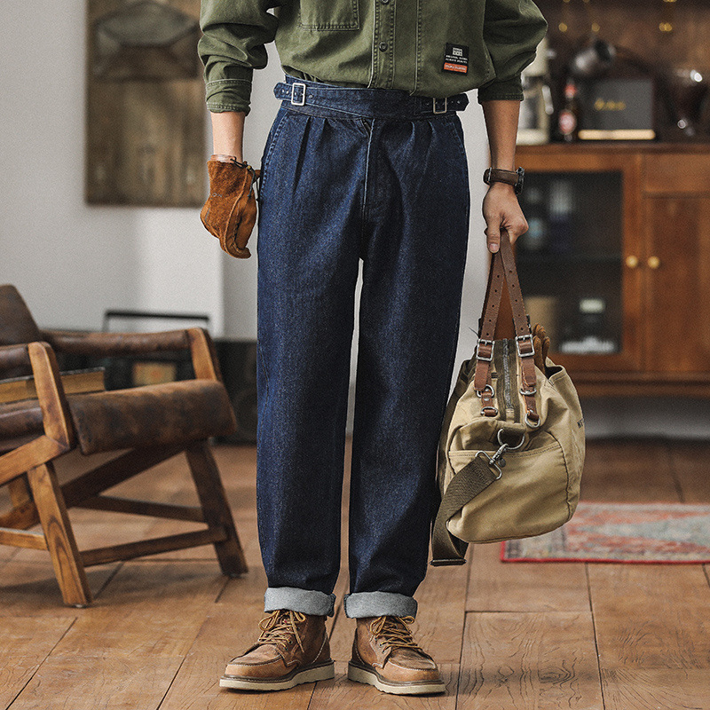 Celana Jeans Golger Berpinggang Tinggi Retro Gaya Amerika Celana Panjang Pria Longgar Lurus