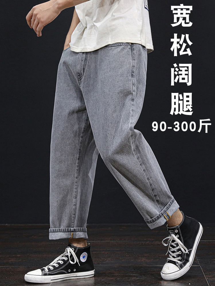 Celana jeans pria ukuran besar, bahan elastis, potongan lurus longgar, ukuran ekstra besar, ekspor lintas batas.