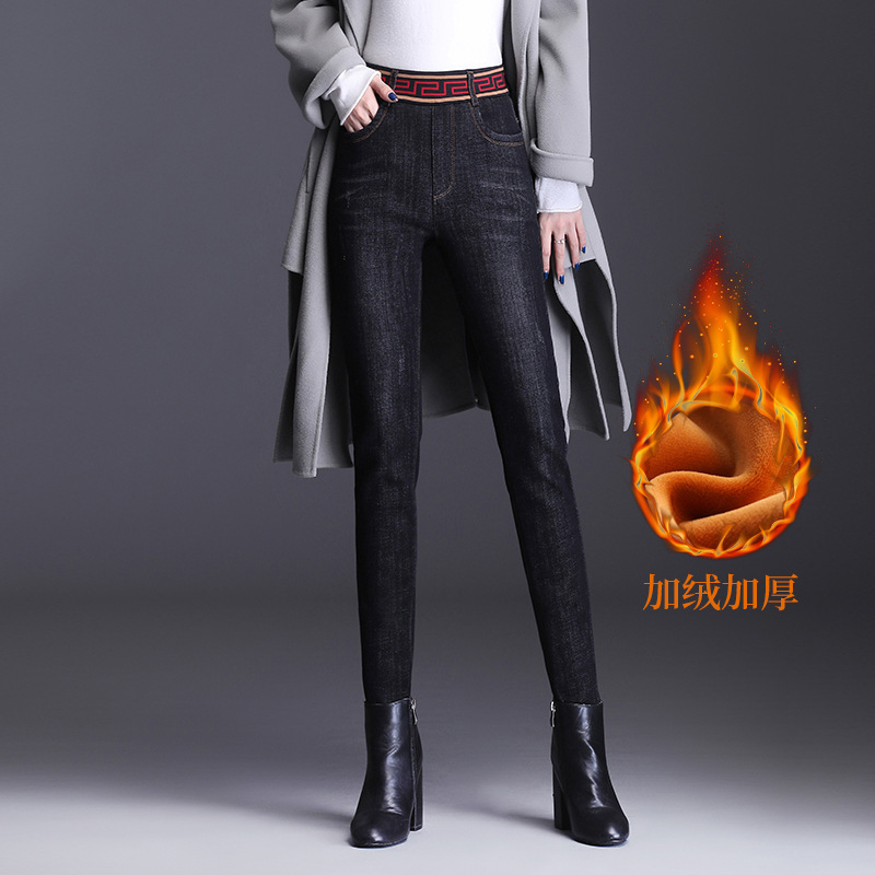 Celana jeans kurus wanita, celana bot pensil kasual melar ukuran besar, ramping pinggang tinggi modis musim gugur dan musim dingin baru 2023