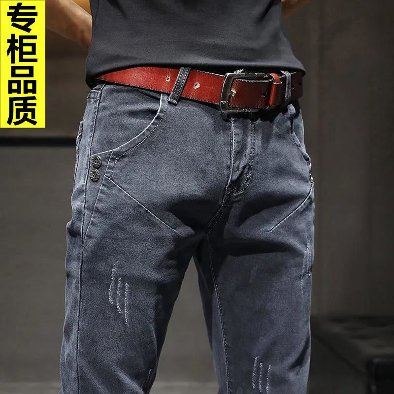 Celana Jeans Pria Elastis Celana Panjang Mudah Dipadu Padan Retro Kasual Remaja Ketat Kaki Slim Fit Model Musim Gugur Pria Trendi