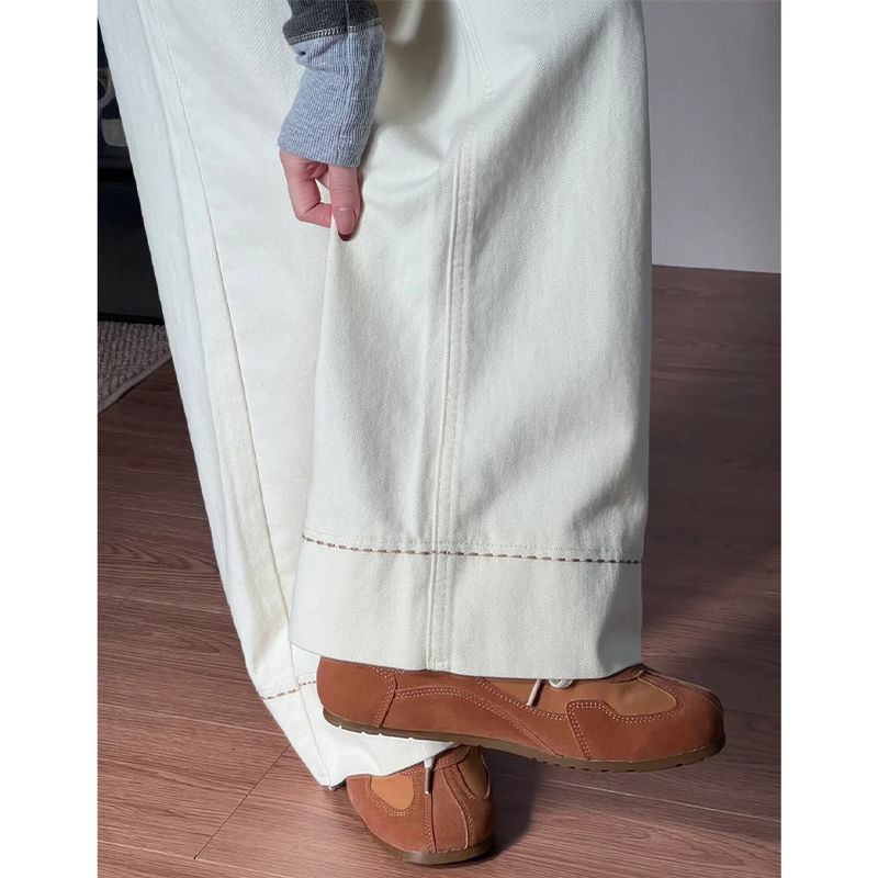 Celana Jeans Kaki Lebar Warna Putih Celana Lurus Pria Kecil Musim Semi Model Baru 2025 Celana Tubuh Berbentuk Pir Wanita Berukuran Besar