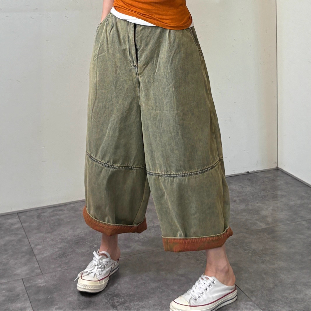 Amazon Crossborder 2024 Musim Panas Pakaian Wanita Kaki Lebar Celana Kasual Denim Ukuran Besar dengan Warna Biru Dicuci Banyak Warna