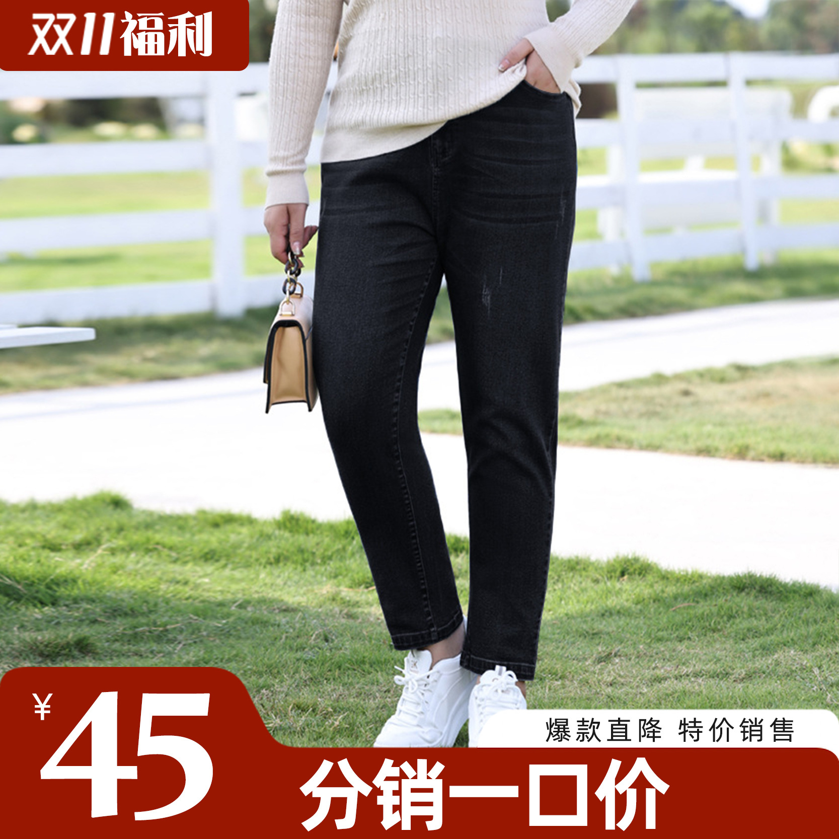 Celana jeans elastis ukuran besar untuk wanita, celana harem baru musim panas untuk wanita berat badan 200 pon, celana kasual pelangsing berpinggang tinggi untuk wanita.