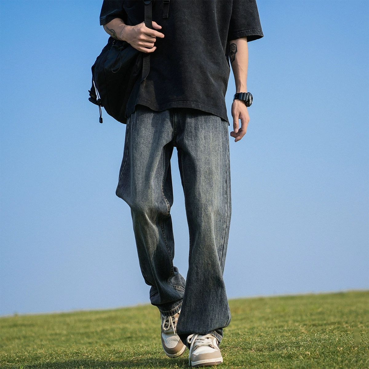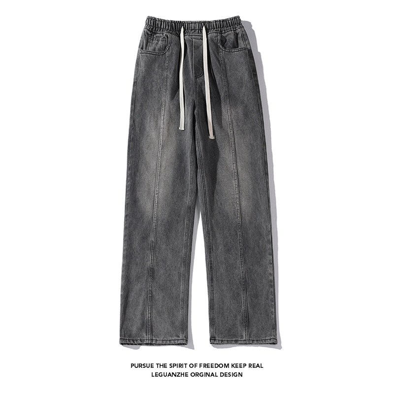 Jeans Dicuci Air Merek Terkenal Tinggi Celana Kaki Lebar Lurus Niche Gaya Desain Musim Gugur Musim Dingin Pria