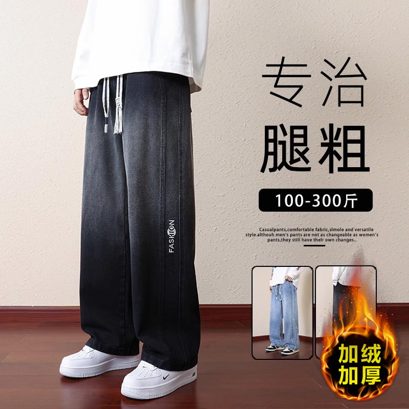 Celana jeans ukuran besar untuk pria, celana jeans longgar lurus Amerika kasual trendi ukuran ekstra besar Musim Semi dan Gugur