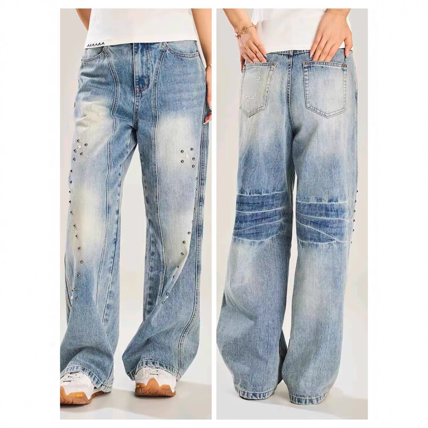 Celana Jeans Kaki Lebar Longgar Hip Hop yang Dicuci Air Tua Retro Gaya Amerika