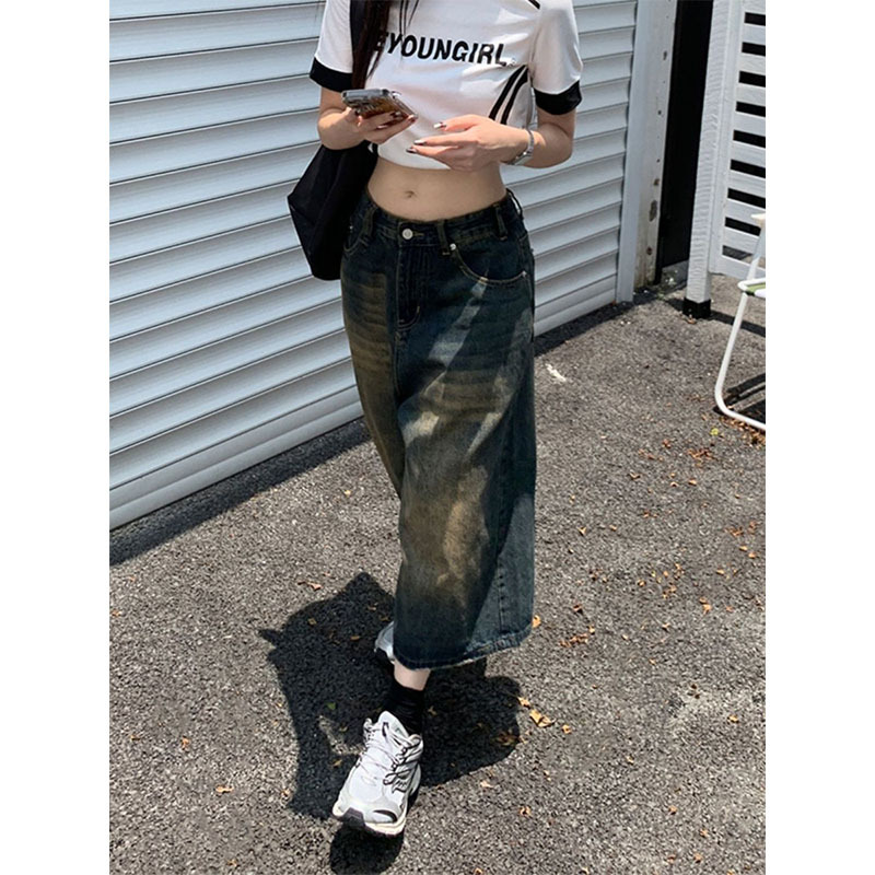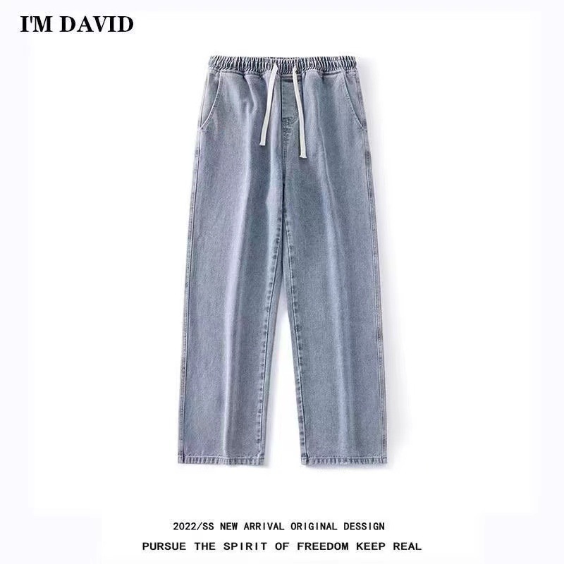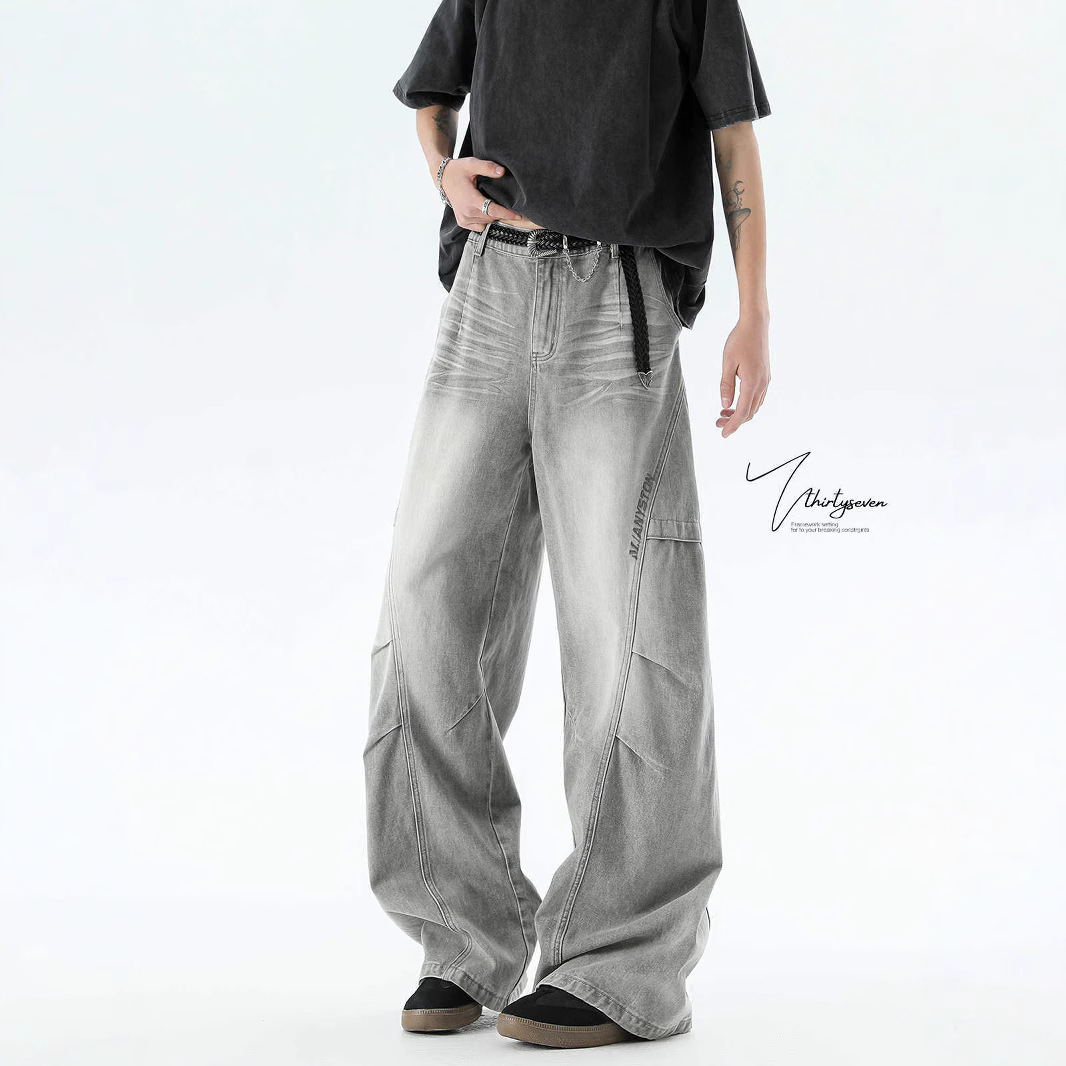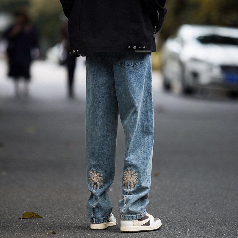 American washed jeans vintage pria dan wanita, celana pel lurus longgar pembersih Fit merek Tide