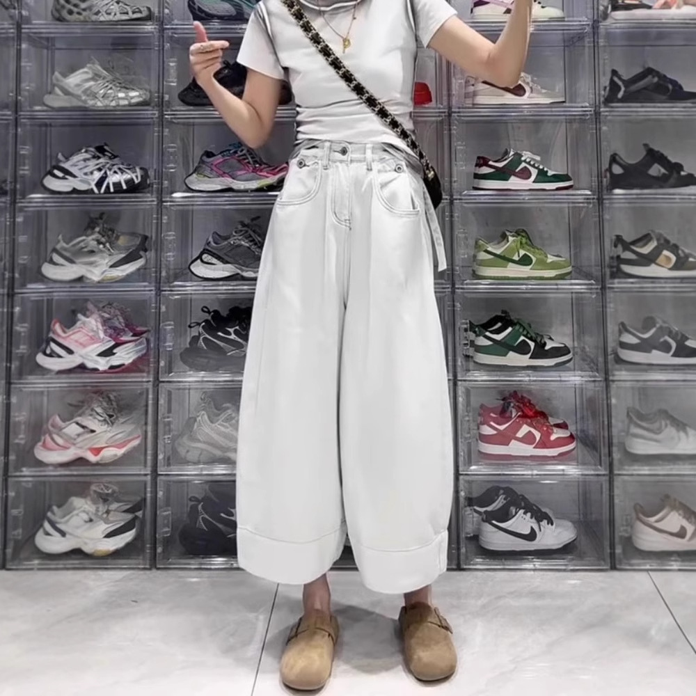 Celana Jeans Kaki Lebar Pria Kecil Celana Lurus Mudah Dipadu Padan Menutupi Pinggul Terlihat Langsing Longgar Berbentuk Buah Pir Ukuran Besar Model Baru Musim Panas Wanita