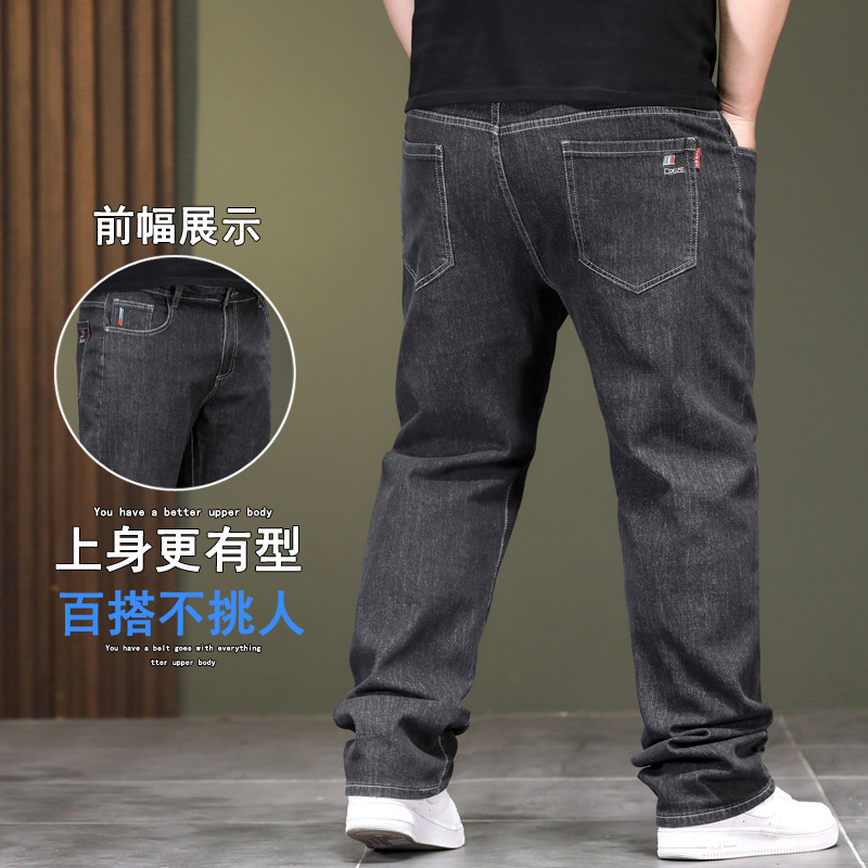 6332 | Celana panjang ukuran Plus pria, jeans longgar anti-pudar, celana panjang regang anti-statis musim semi dan panas baru semua cocok