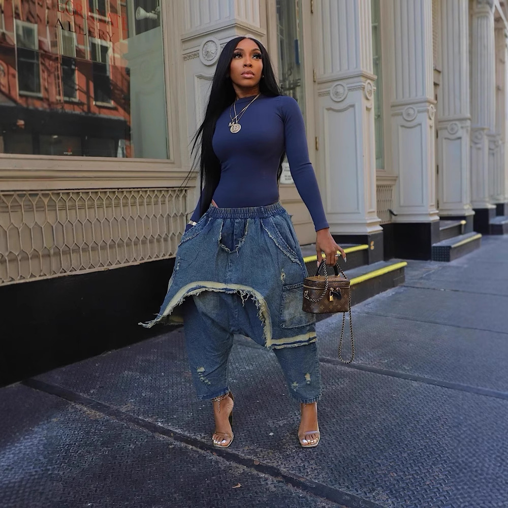 Double days 2024 Denim ST1177, jeans desain rumbai baru musim semi ukuran besar pinggang elastis melar