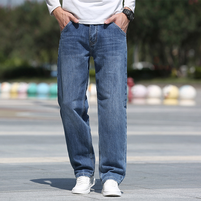 Jins lurus longgar pria, celana jins pria lurus longgar ukuran besar musim gugur dan musim dingin, penjualan langsung pabrik