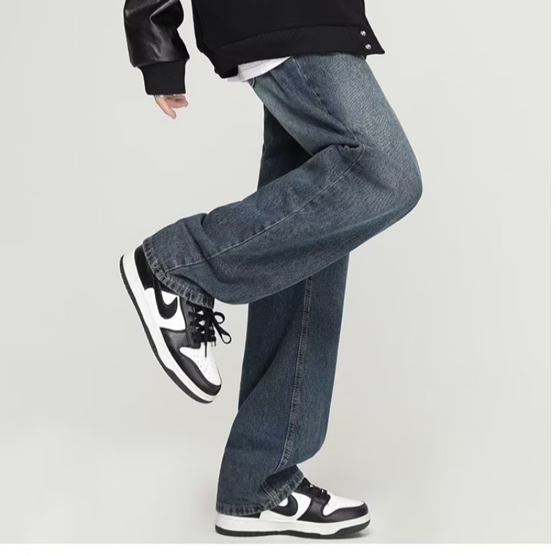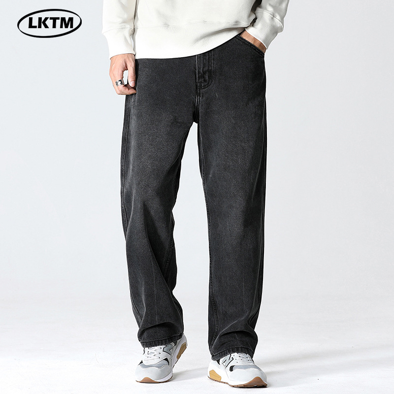 LKTM celana jins gaya lurus longgar pria, celana jins Amerika Semua cocok kaki lebar ukuran plus Pria