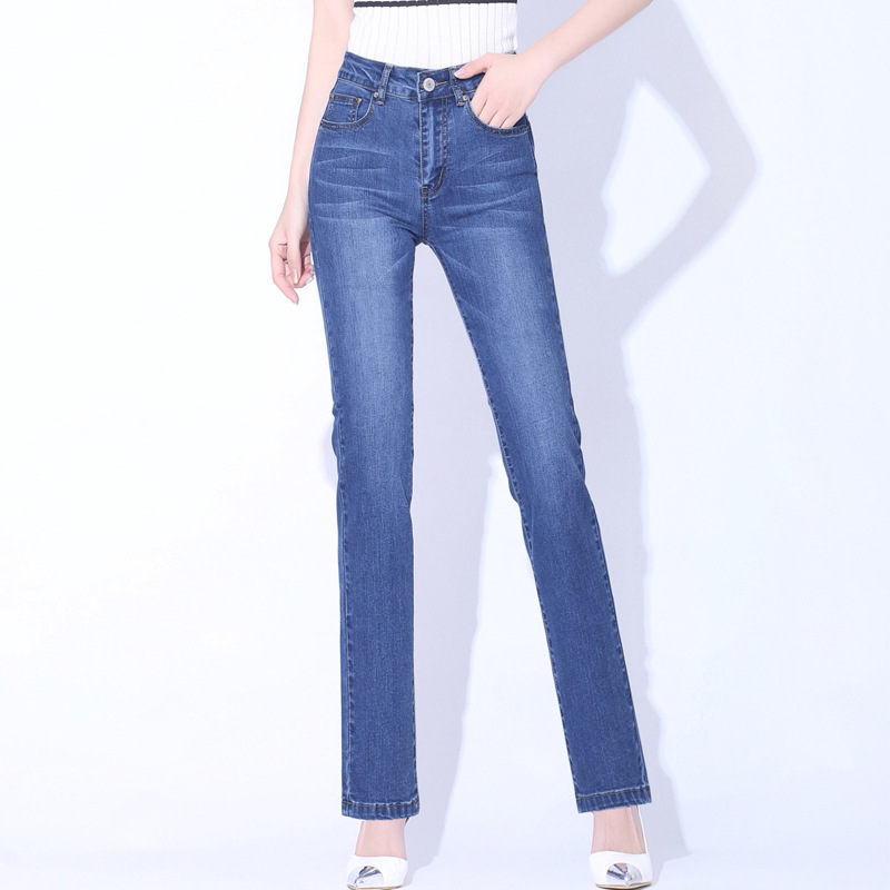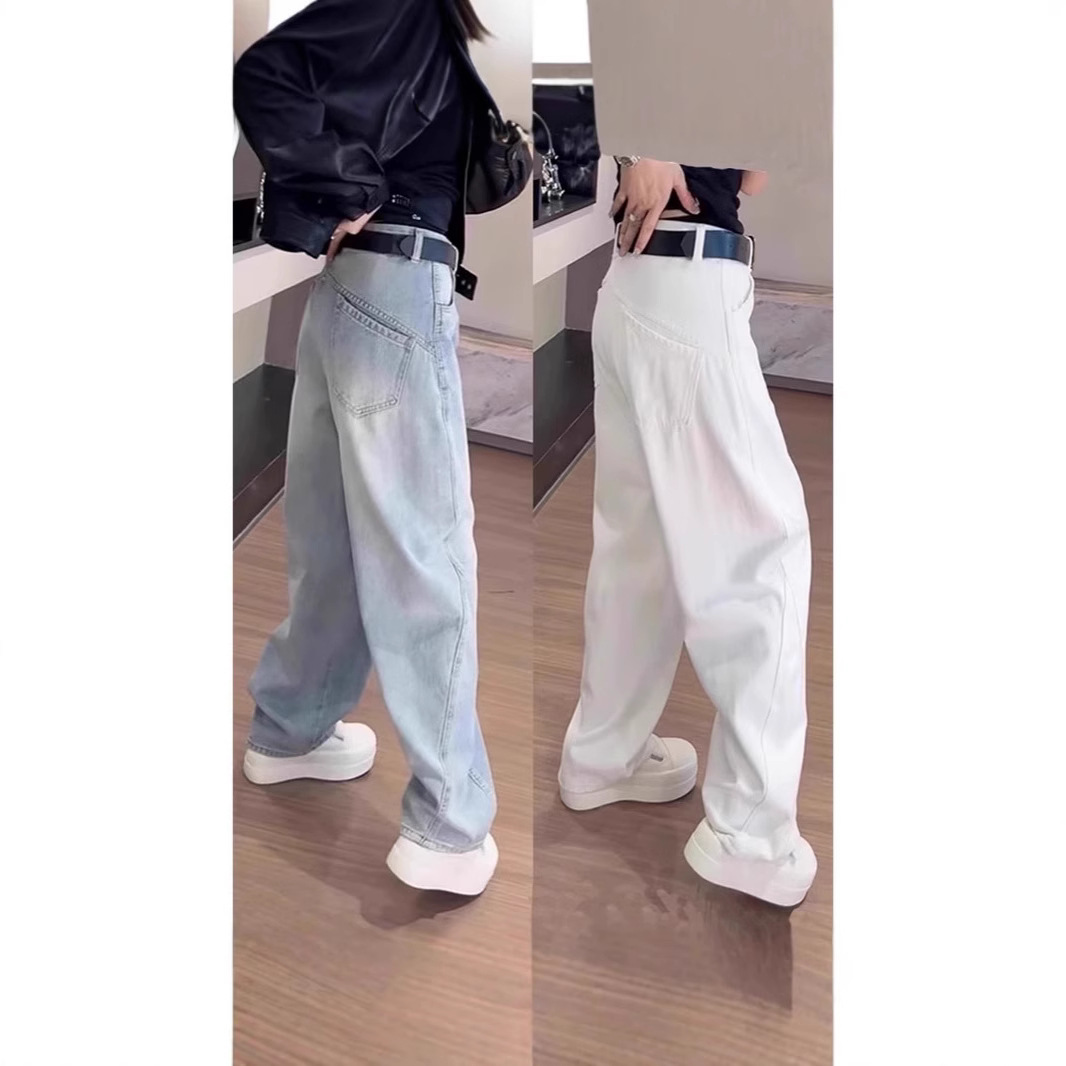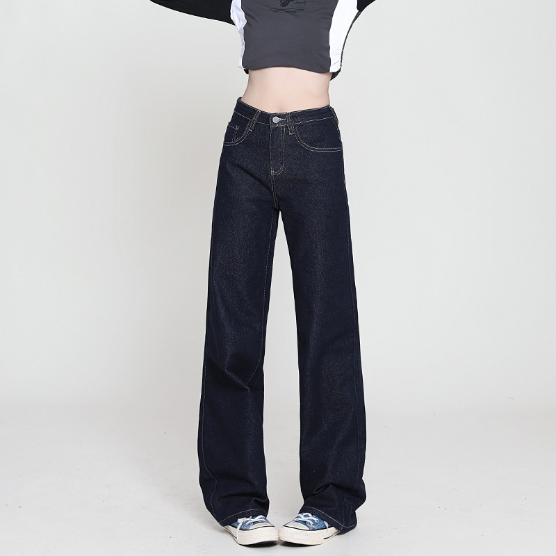 Celana Jeans Wanita Mudah Dipadu Padan Model Populer Musim Gugur Celana Lurus Longgar Celana Kaki Lebar Model Sempit Pinggang Tinggi Model Baru 2024
