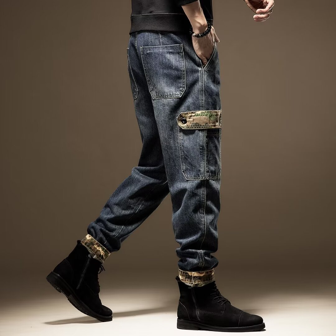 Pakaian Pria MTLCLOTHES | Celana Panjang Denim Instagram Longgar Pel Kaki Lebar Retro Gaya Amerika Baru Musim Gugur dan Musim Dingin 2024