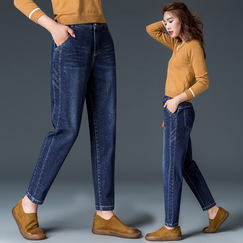Celana wanita Jeans baru musim gugur dan musim dingin celana harem potong wanita celana kasual ukuran besar celana lobak grosir pabrik 9017
