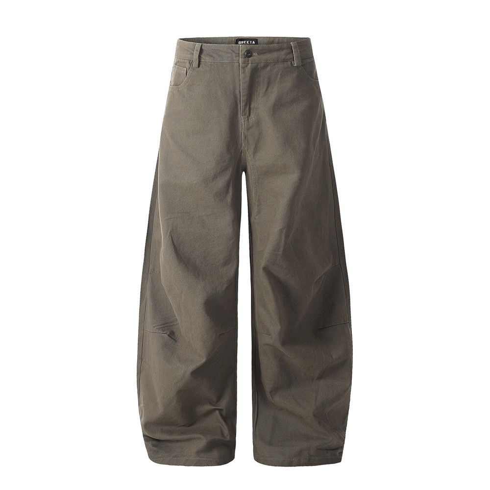 Celana Solok Denim Celana Kerja Pria Kaki Lebar Longgar Celana Panjang Lipat Jalan Tinggi Merek Populer vibe Celana Pisang Provinsi Warna Solid