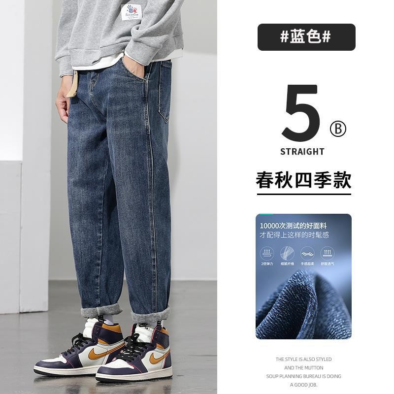 Celana jeans pria longgar ukuran besar model lurus trendi kasual warna biru merek fashion serbaguna musim semi 2025