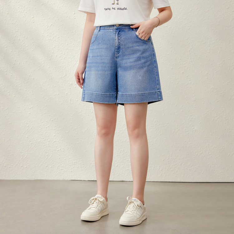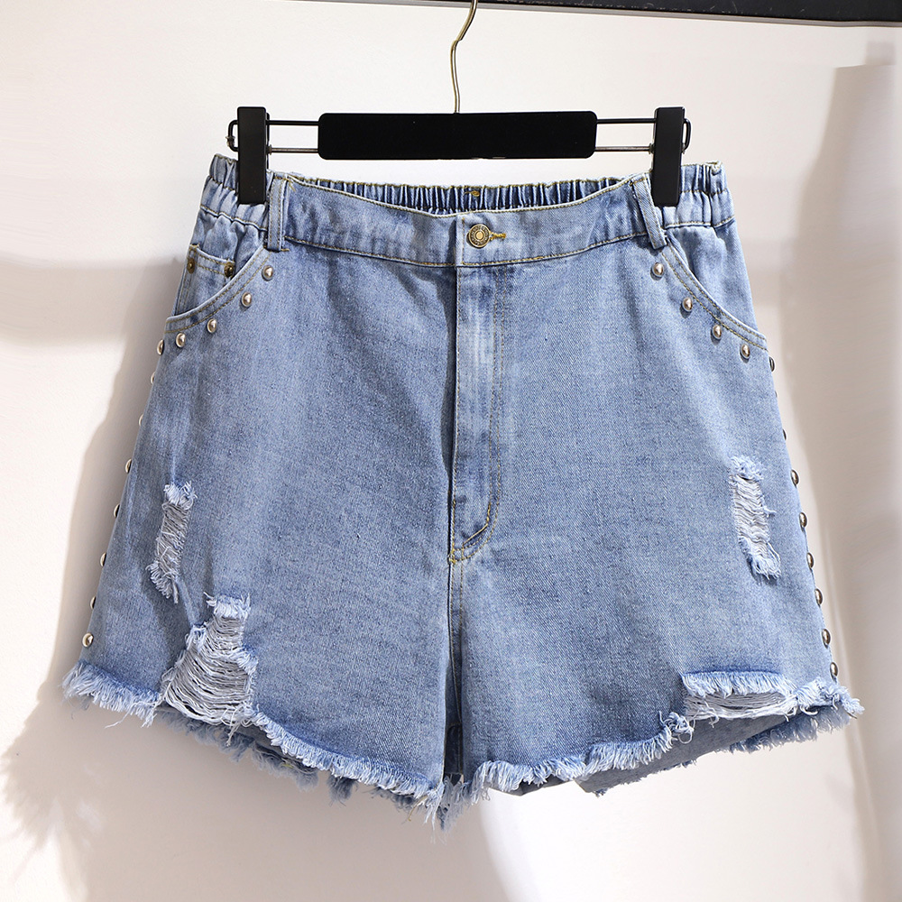 [Celana Pendek Denim Terlihat Langsing Pinggang Belakang Elastik Mudah Dipadu Padan Mudah Dipadu Padan] Pakaian Wanita Ukuran Besar Wanita Gemuk M2025 Musim Panas Model Baru
