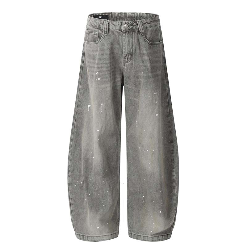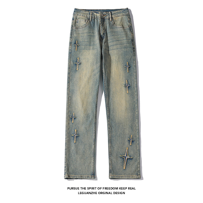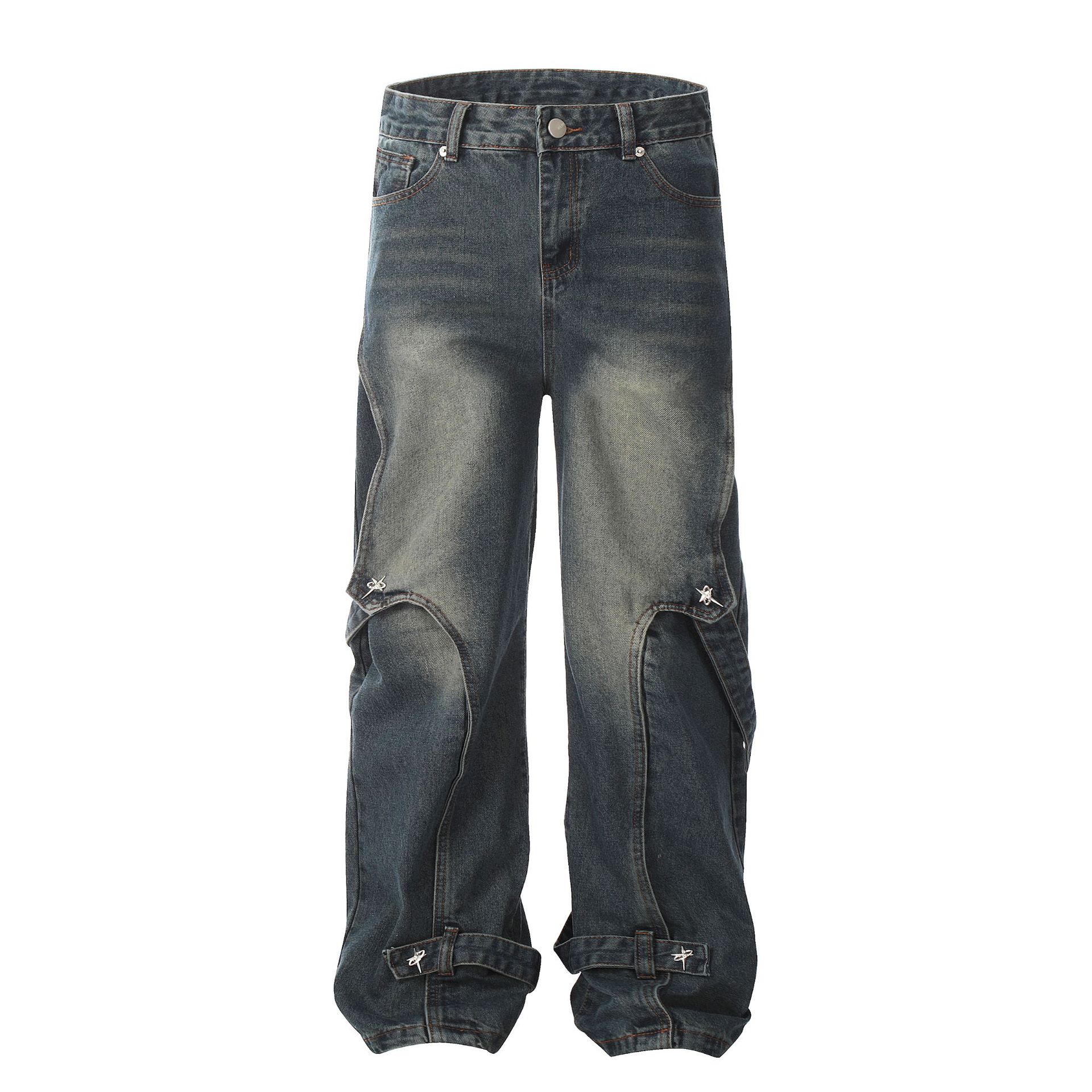 Celana Jeans Kaki Lebar Kasual Longgar Merek Trendi Jalanan Pakaian Pria Celana Golok Lama Dicuci dengan Tinta