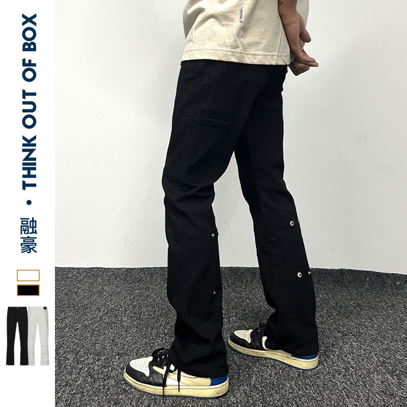 Celana jins pria lurus, celana jins lurus, klakson mikro, pelangsing longgar, merek mode pria, celana kasual warna solid, gaya vibe Amerika