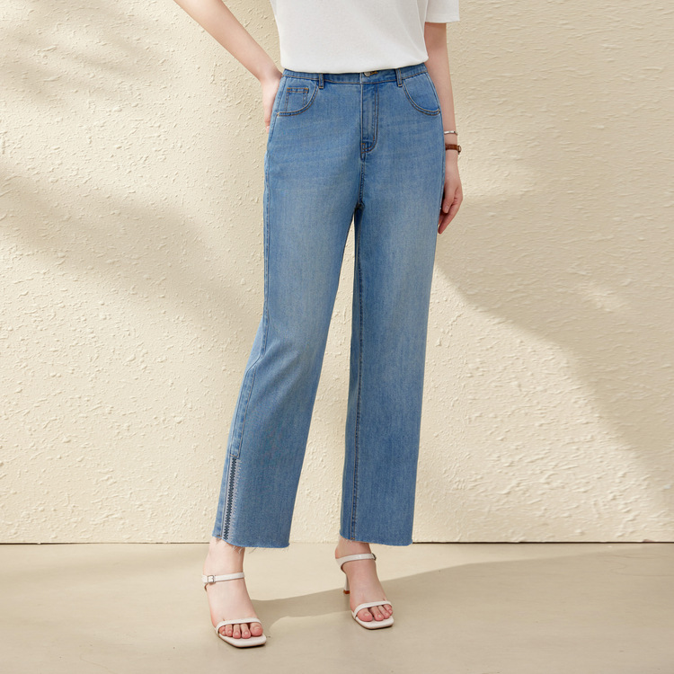 Celana Jeans Warna Asli Super Tipis Serat Sutra Mulberry Musim Panas dan Musim Semi Model Lurus Elastis Celana Jeans Pria Mudah Dipadu Padan Trendi