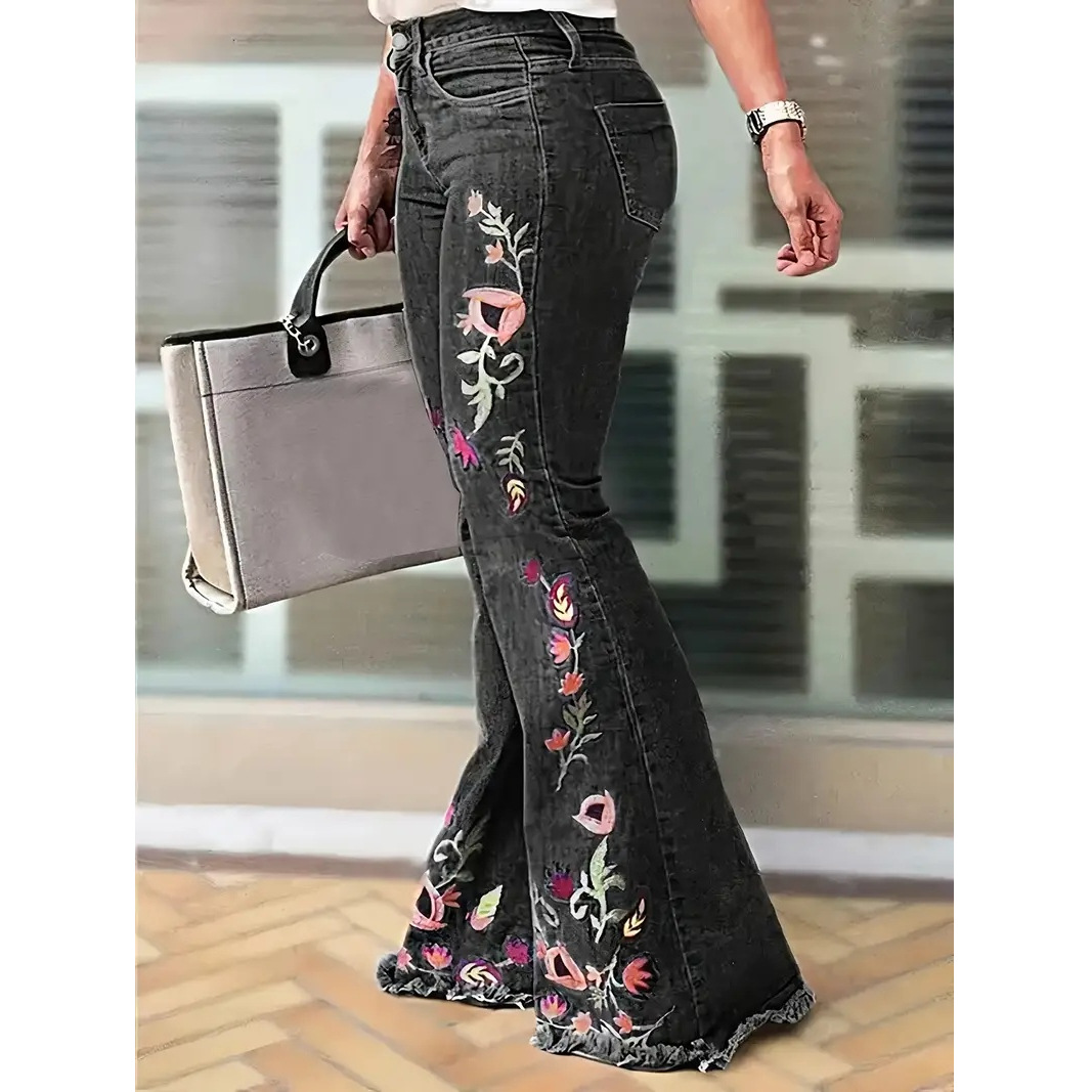 Jeans Elastis Bordir Model Baru Musim Semi dan Musim Panas 2025 Pakaian Wanita Denim Dicuci Air Nostalgia Ukuran Besar