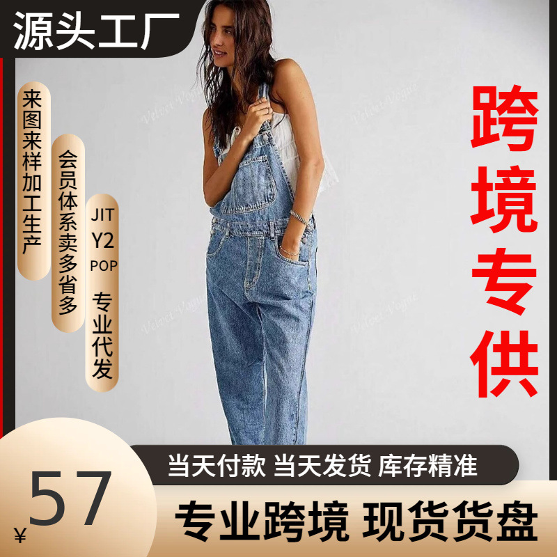 Xiyin Amerika Gudang Luar Negeri Barang Tersedia Rambut Lurus Pakaian Wanita Lintas Batas Seksi Tanpa Lengan Harlan Celana Jeans Eropa