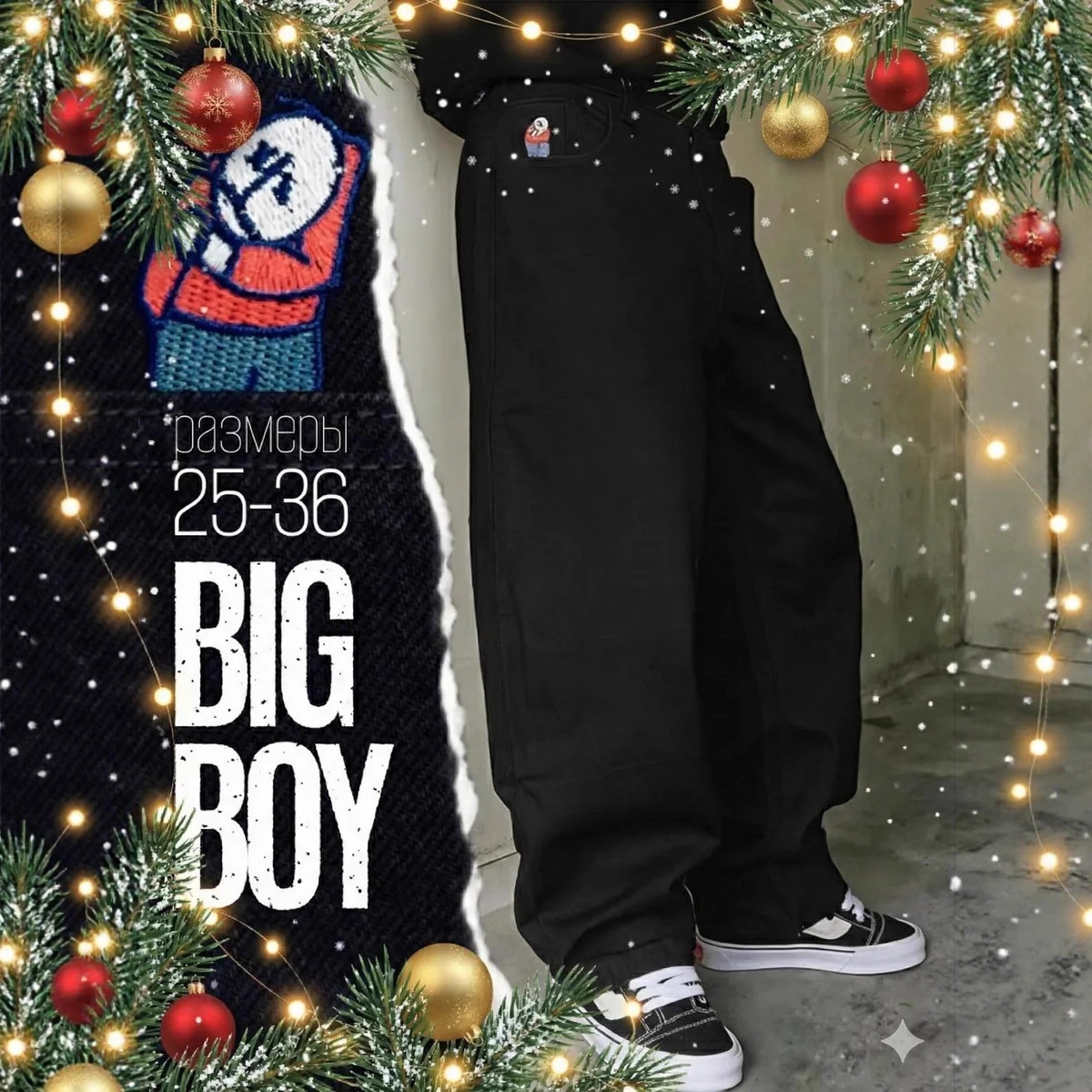 Jins besar BIGBOY jalanan Eropa dan Amerika, jeans longgar bordir pola kartun Harajuku hip hop