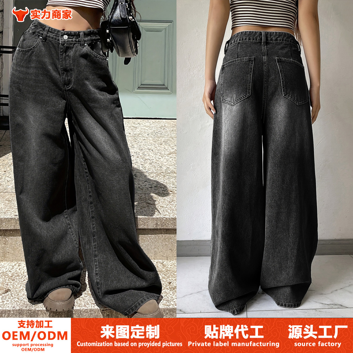 Perdagangan Luar Negeri Luar Negeri Celana Jeans Kaki Lebar Gaya Desain Eropa Amerika Amazon Celana Panjang Lurus Modis Kasual Longgar Wanita Instagram