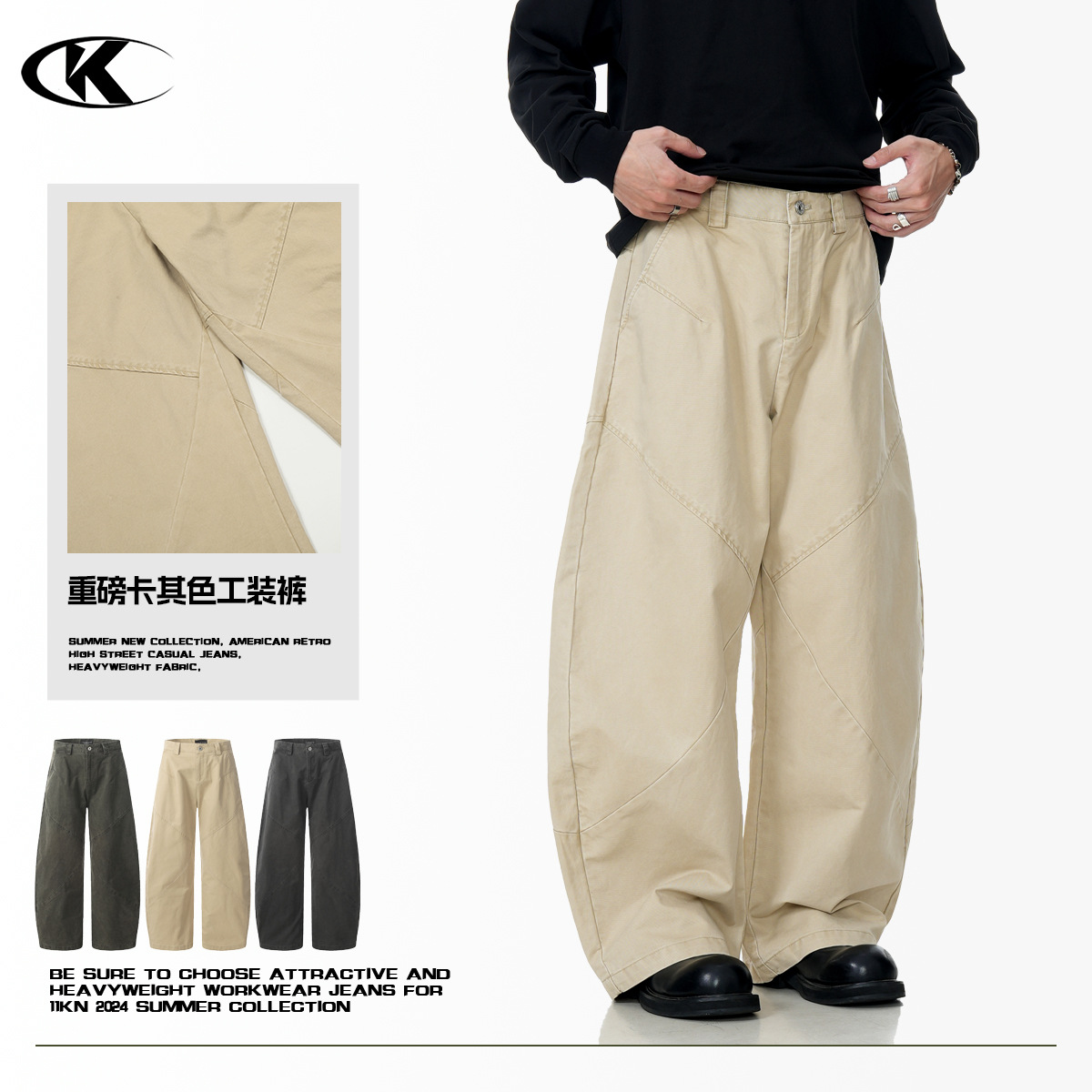 Celana Scimitar Lurus Retro Amerika 11KN untuk Pria dan Wanita, Celana Kasual Pakaian Kerja Kaki Lebar Tampilan Pelangsing Denim Longgar Sederhana dan Trendi